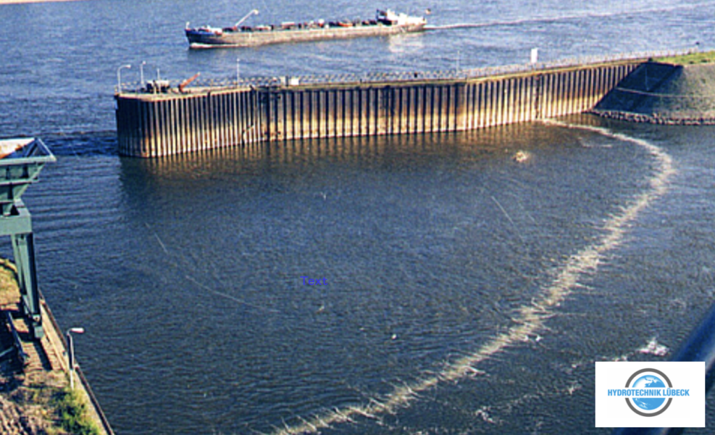 vollautomatische Öl-Druckluftsperre mit vollautomatischer Gewässerreinigung bei Gewässerverunreinigung.